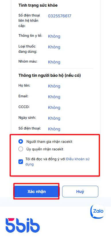 Bước 8 Kiểm tra lại thông tin đăng ký và bấm [Xác nhận] để tiếp tục