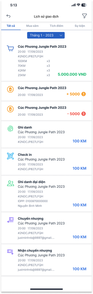 Bước 2: Tại màn hình lịch sử giao dịch có thể xem được các thông tin từng giao dịch của bạn