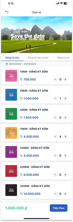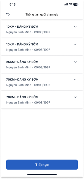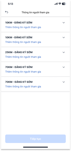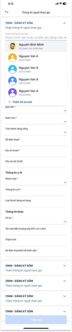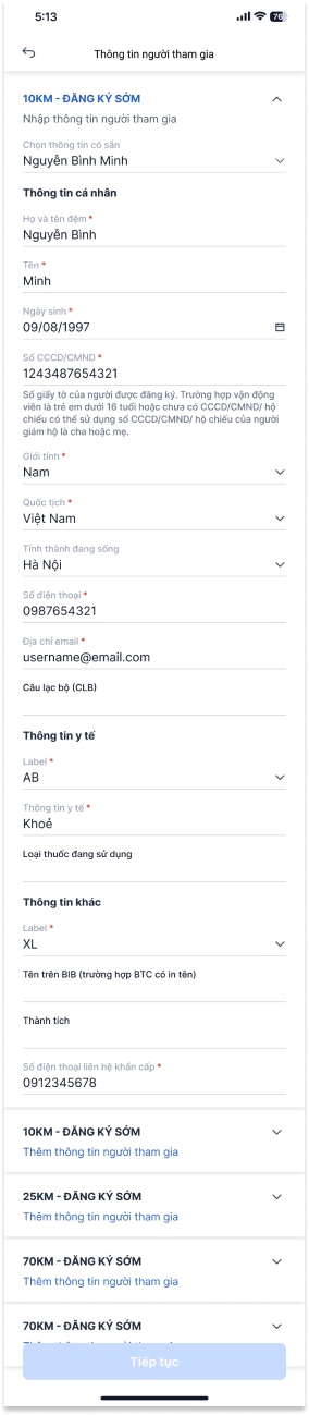 Bước 7: Điền Thông tin vận động viên cho từng vé