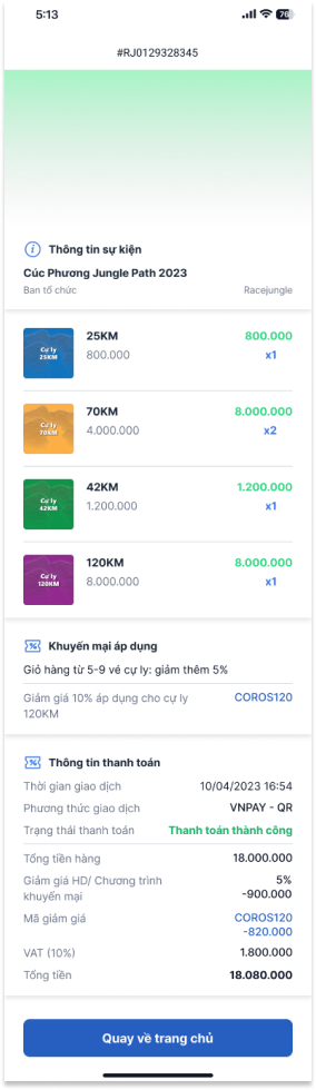 Bước 10: Bạn sẽ nhận được thông báo khi thanh toán thành công